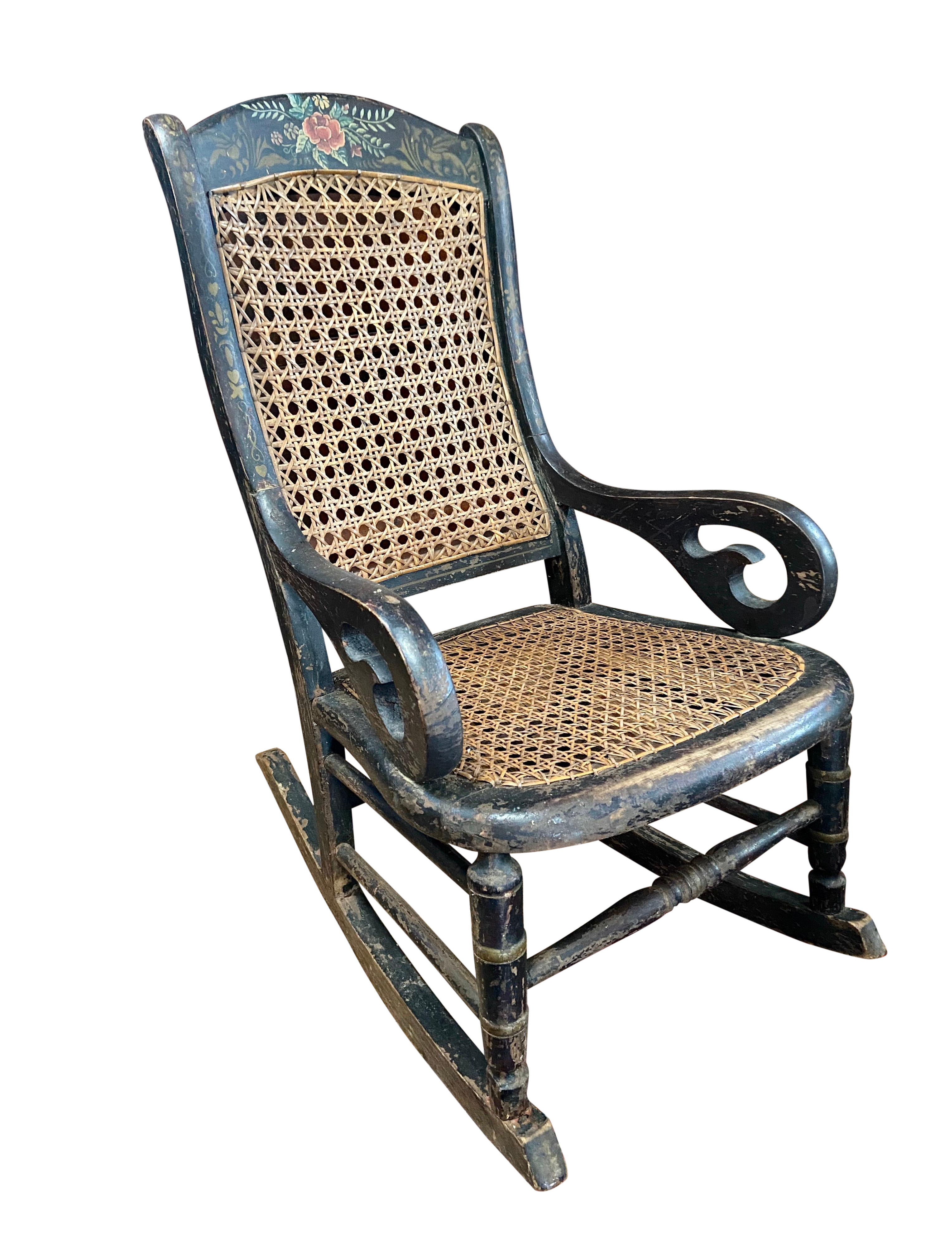 19th Century Antique Gilt Hand Painted Child S Rocking Chair Cane